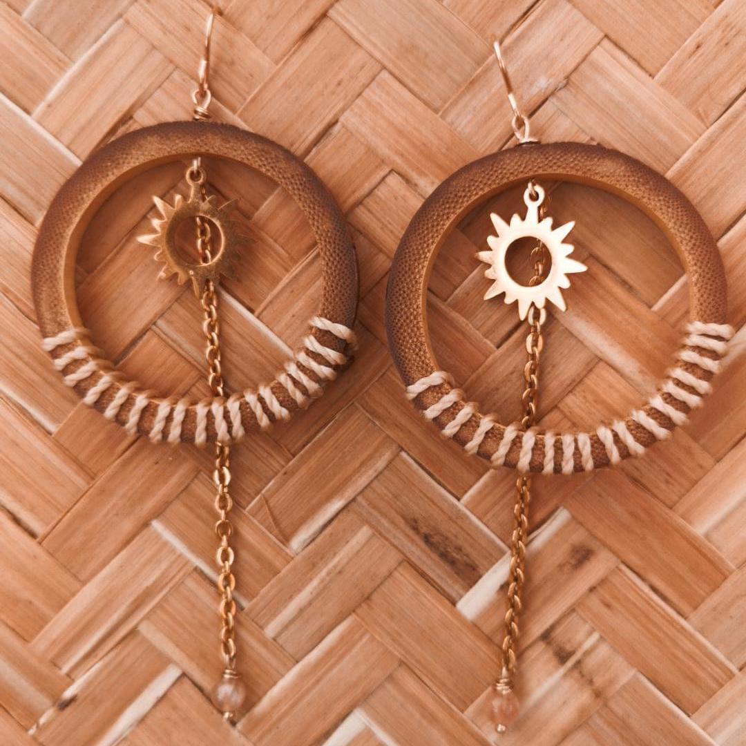 Bamboucles Sand&Sunset 27,00 € Boucles d'oreilles en bambou avec soleil doré en acier inoxydable et pierre naturelle.